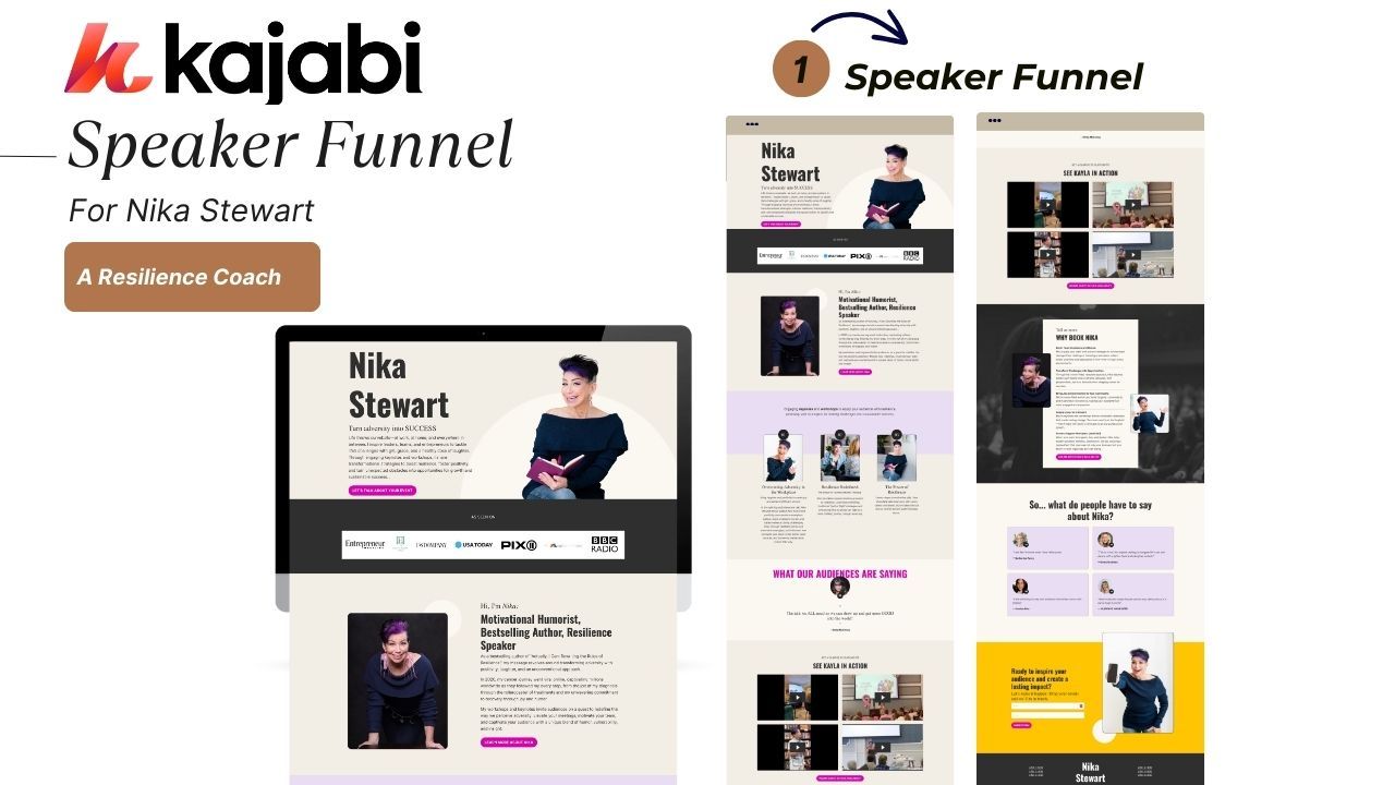 Kajabi Speaker Page Design for Nika, Resilience & Motivational Speaker